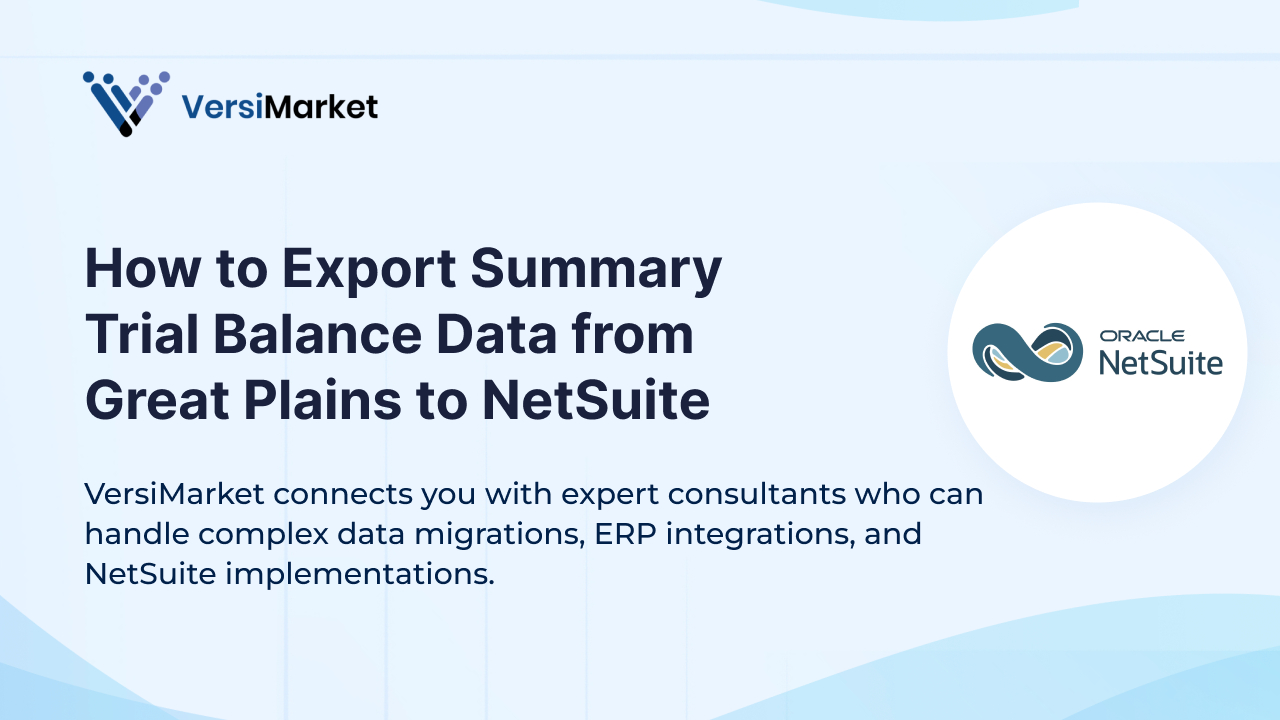NetSuite How to Export Summary Trial Balance Data from Great Plains to NetSuite Read More » January 15, 2026